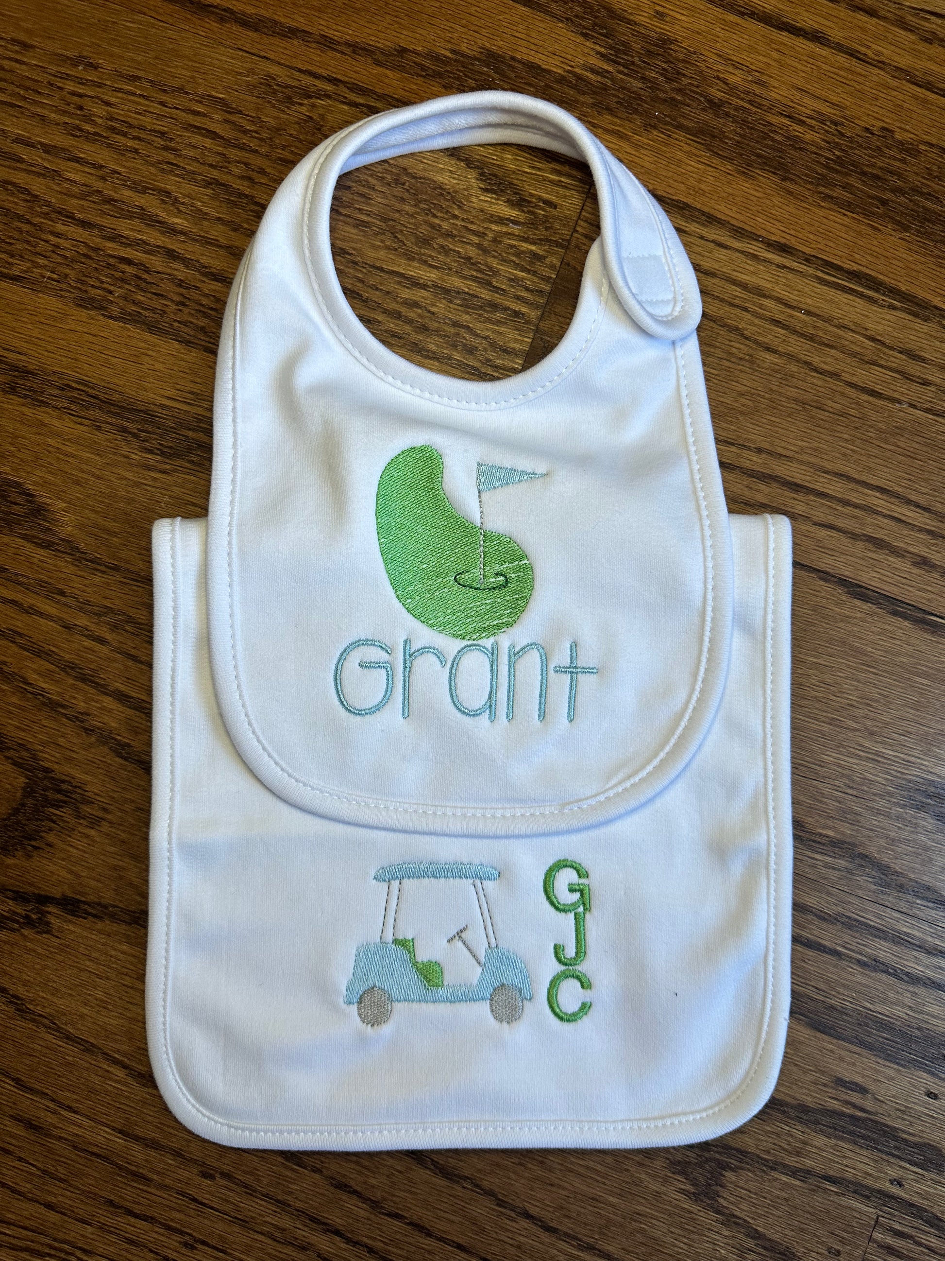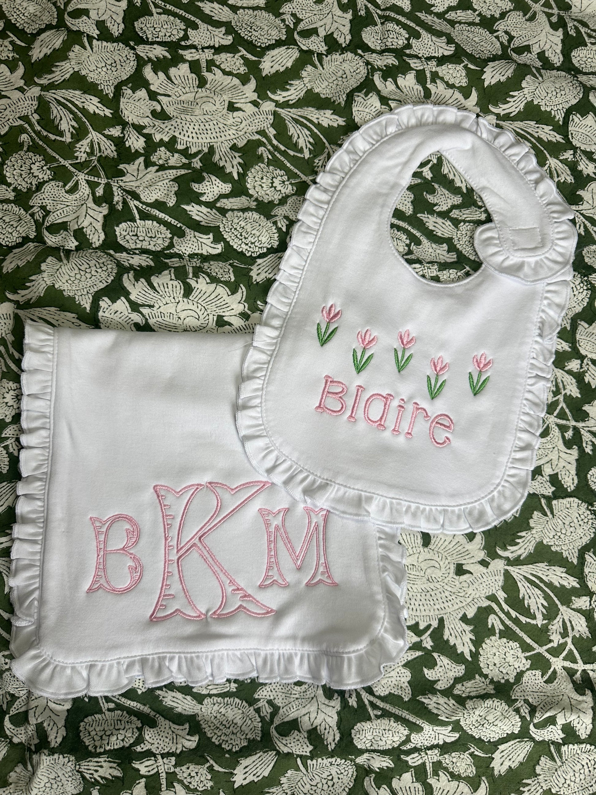 Cotton bib and burp cloth bundle - pick your monogram, motif or both!