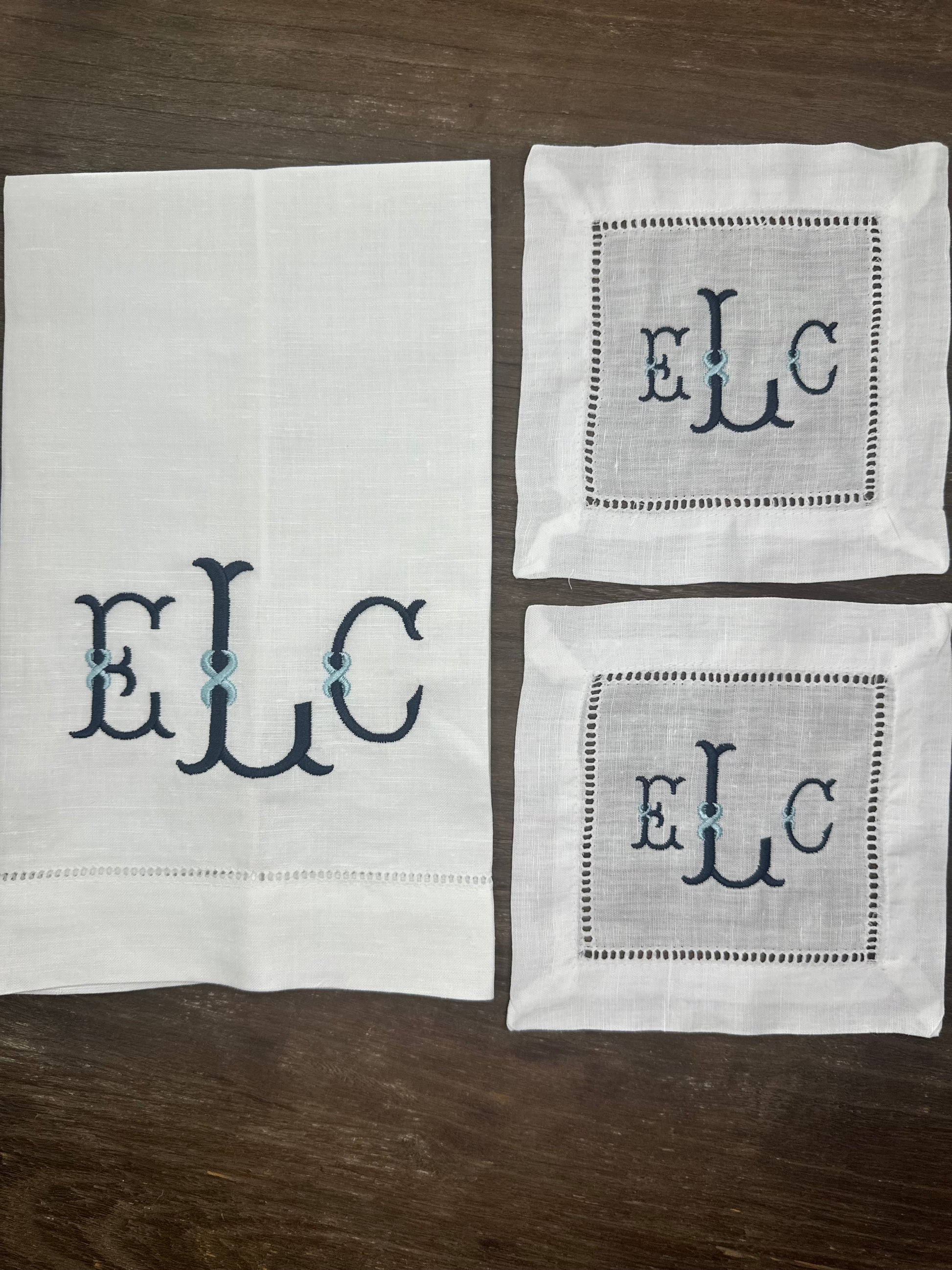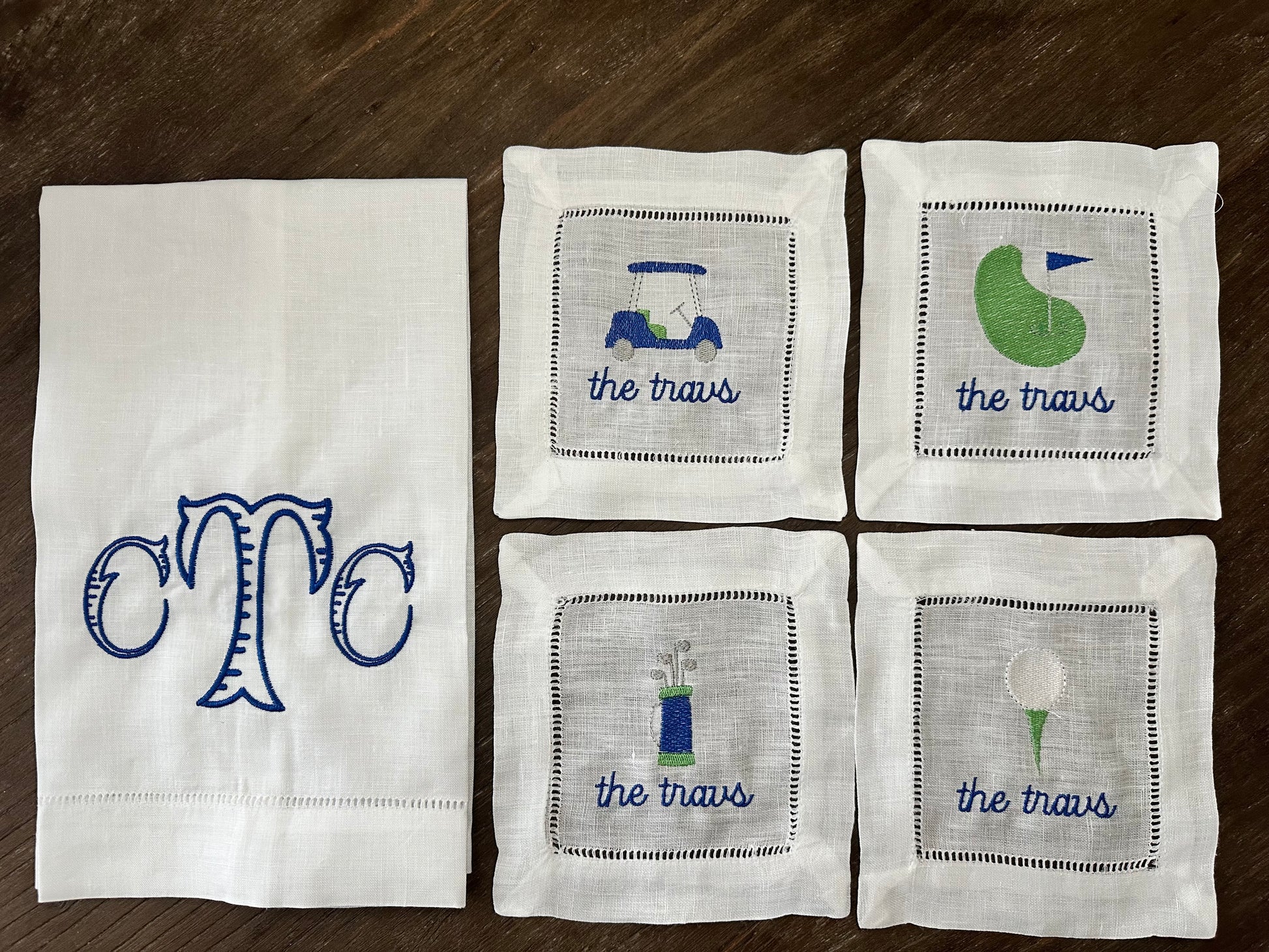 Linen tea towel and 4 linen cocktail napkins customized anyway you like!
