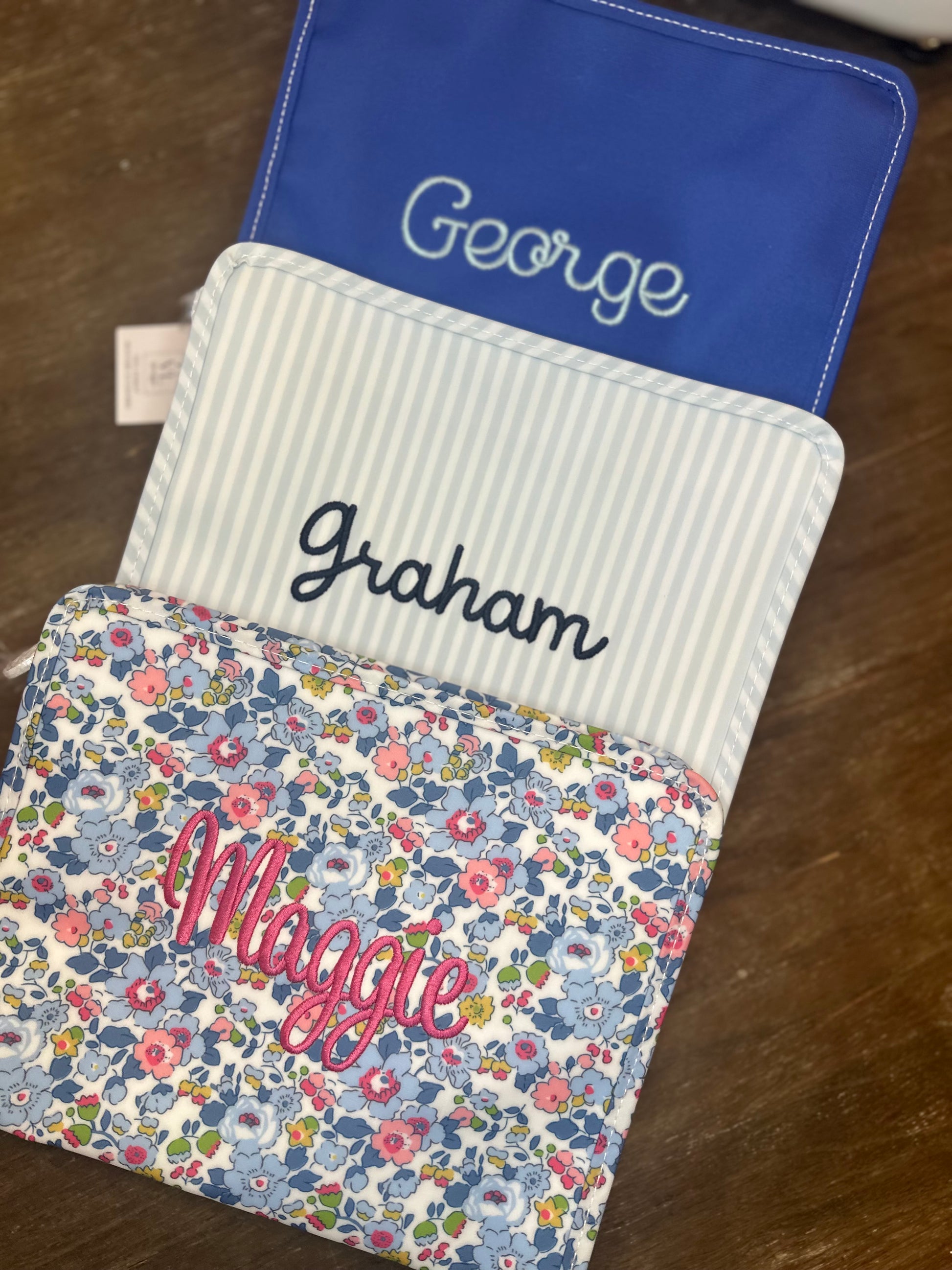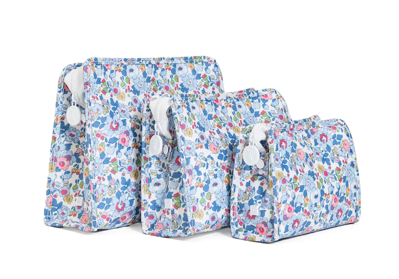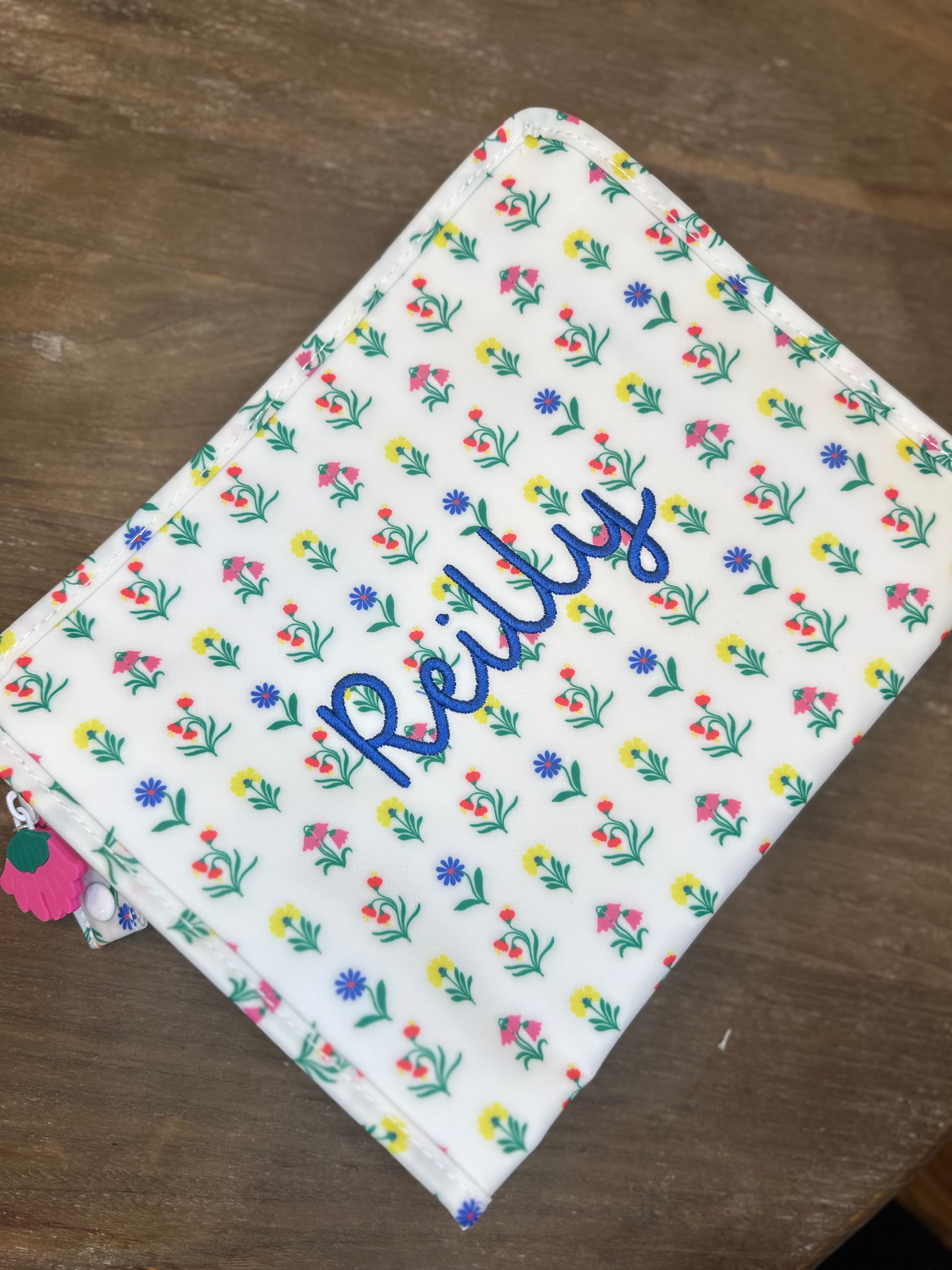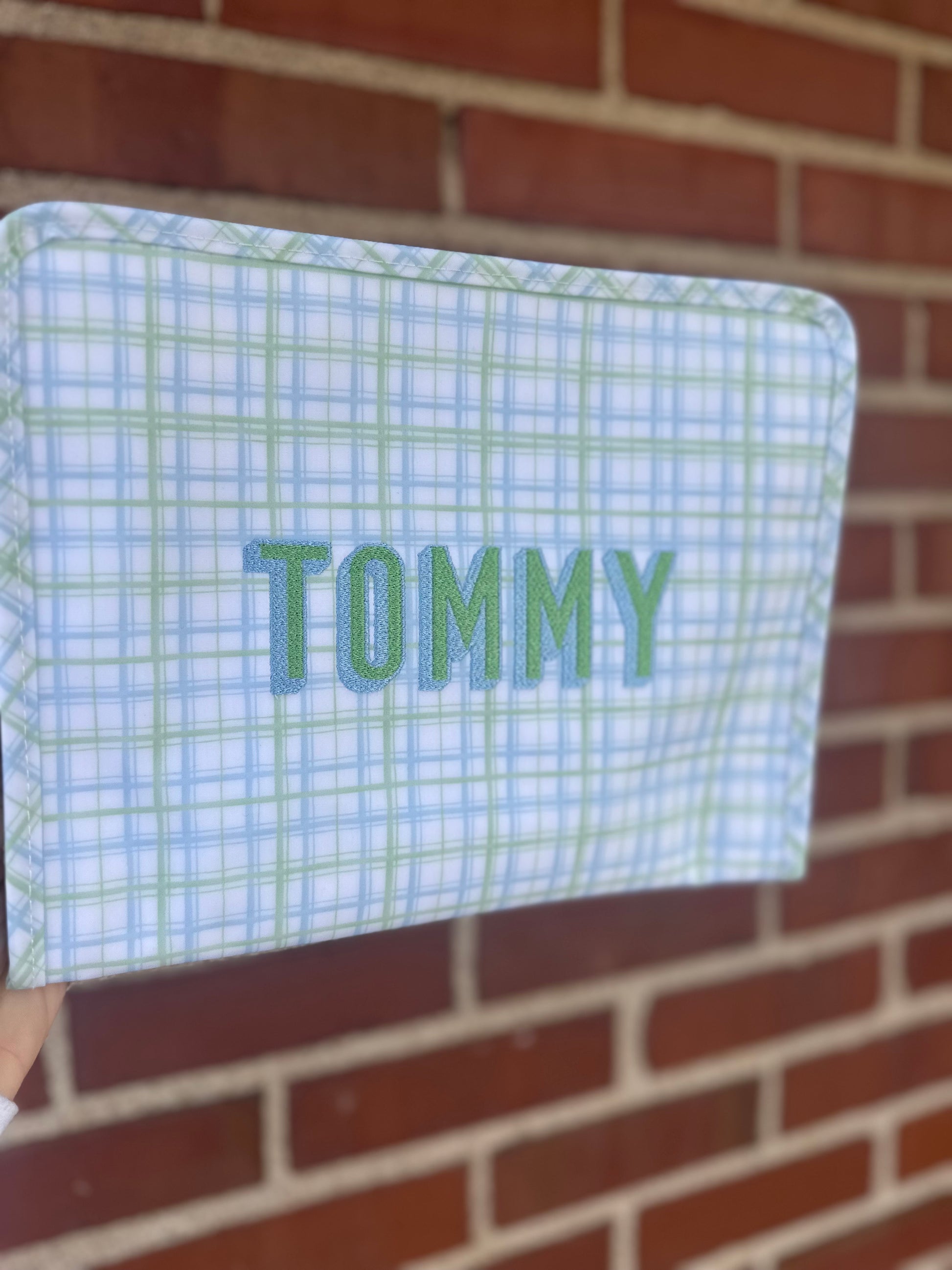 Roadies are our BFFs in the pouch world! The Large Roadie is made in a cotton gingham with a thin Eco-friendly matte coating, an inside slip pocket and exterior snap open zip tabs for a wider opening and an easier access.